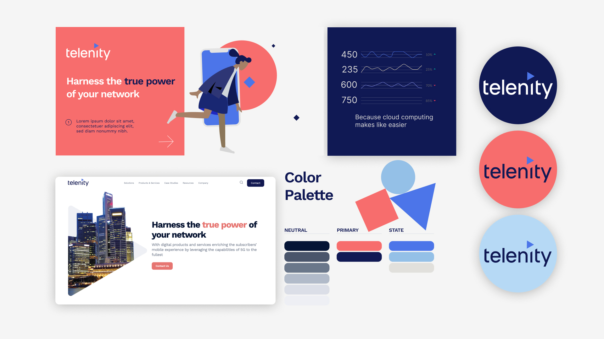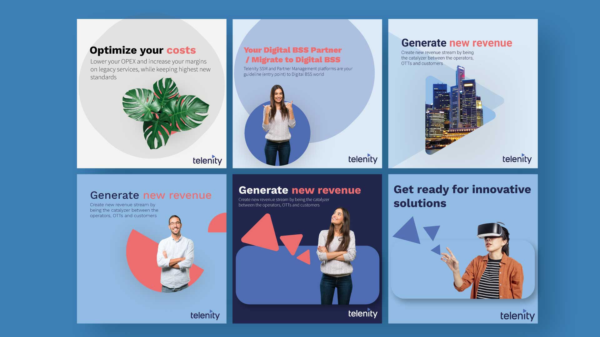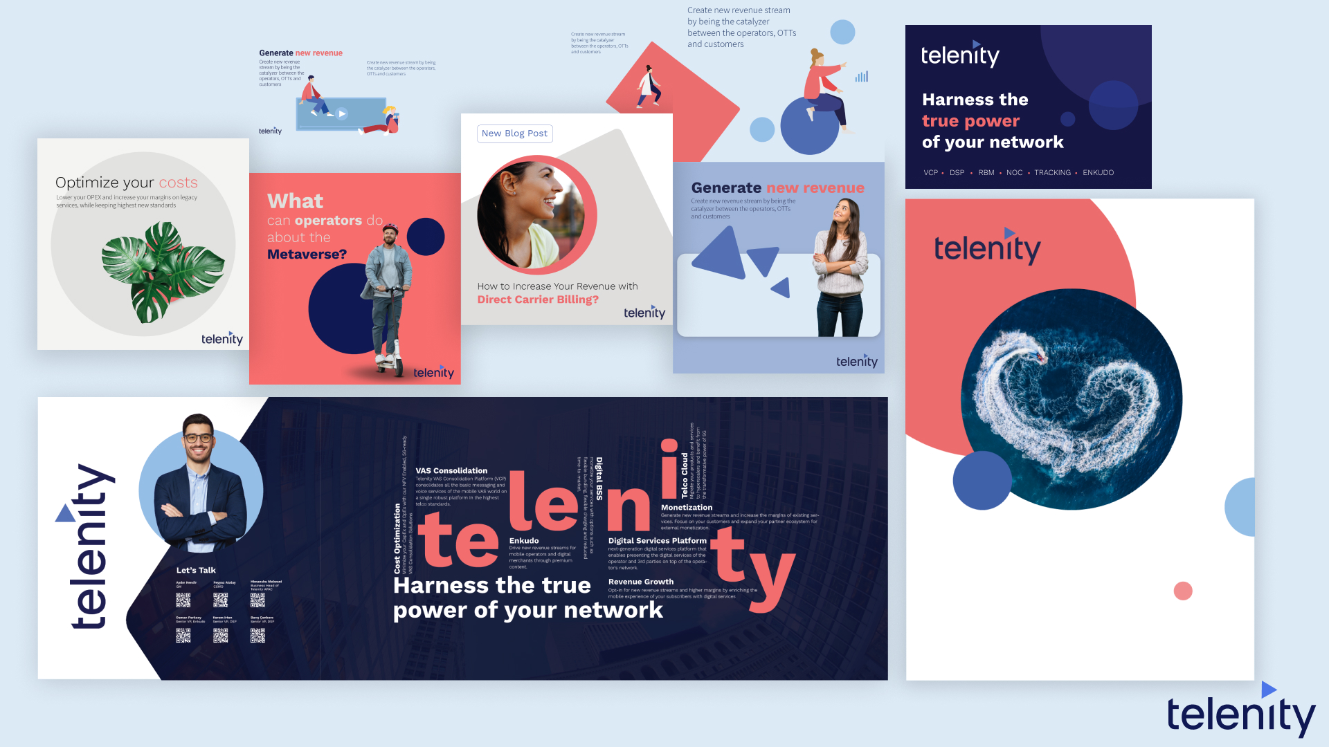 A visual representation of the overall look, feel, and aesthetic of Telenity brand. Include images, colors, textures, and typography that reflect the essence of the brand. Explain why we chose specific elements and how we contribute to conveying telenity brand's story and personality. Make sure to explain the emotions or moods we aimed to capture through the mood board.